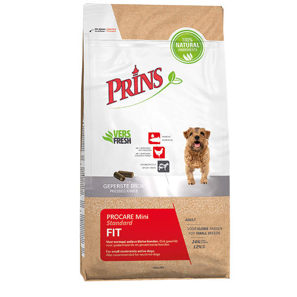 ProCare Mini Standard Fit е пълноценна пресована храна за кучета от малките породи със средни енергийни нужди. Освен това храната е подходяща за кастрирани кучета. Регулираното енергийно съдържание помага на вашето куче да остане в оптимално състояние. Внимателно подбраните съставки допринасят за здрава кожа и лъскава козина, оптимално храносмилане и здрава чревна флора.