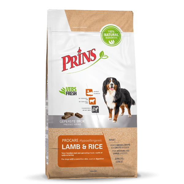 ProCare Lamb & Rice hypoallergenic е пресована храна, препоръчвана за кучета с алергични оплаквания на възраст до около 8 години. Тази пълноценна храна е произведена от агнешко месо с отлично качество, което поддържа кучета с реакции на свръхчувствителност към други източници на протеини. Естествените влакна в храната стимулират здравословния чревен тракт.