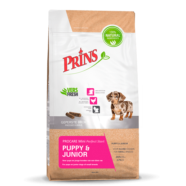 ProCare Mini Puppy & Junior Perfect Start е пресована храна, специално разработена за малки кучета от малки породи, от 4 седмици до около 12 месеца. Тази пълноценна храна допринася за здравословен растеж, ефективна имунна система и оптимално развитие на костите и ставите. Вашето кученце ще се развива по добре балансиран начин, докато расте.
