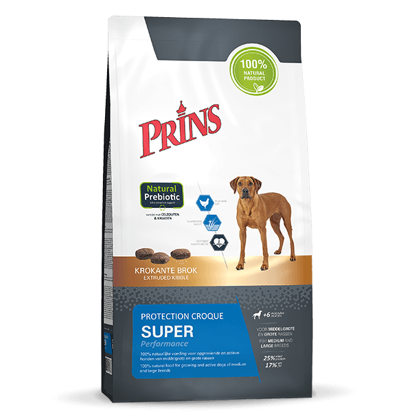 Protection Croque Super Performance е екструдирана, функционална храна, за растящи и активни кучета от средни и големи породи. Тази пълноценна храна, обогатена със сьомгово масло, FOS, пробиотици, билкови екстракти и клетъчни соли на Schussler, поддържа вашето куче в отлична форма, като гарантира здрава кожа и лъскава козина. Есенциалните мастни киселини доставят достатъчно енергия за активни и/или бременни и кърмещи кучета.